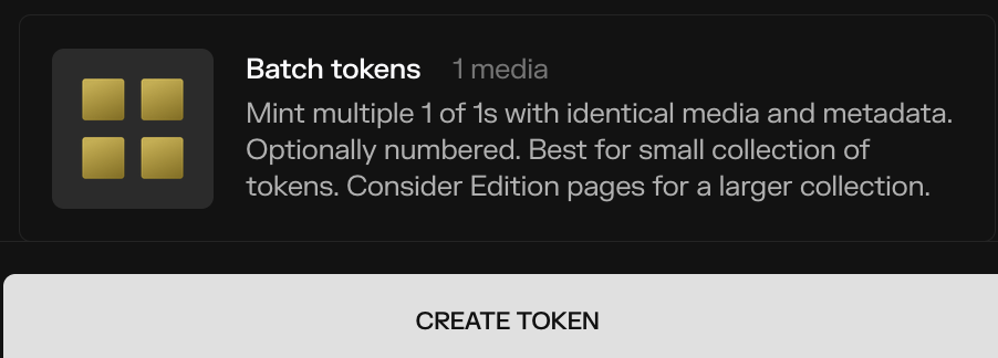 I’ve had a long running issue with edition claim pages not allowing me to created numbered editions (ie numbered ‘art name #1/5’, ‘art name #2/5’ etc - see my other post here in the forum about that), so as a work around I decided to do a batch mint (1/1, same media with optional numbering) to make sure they would definitely be numbered correctly.