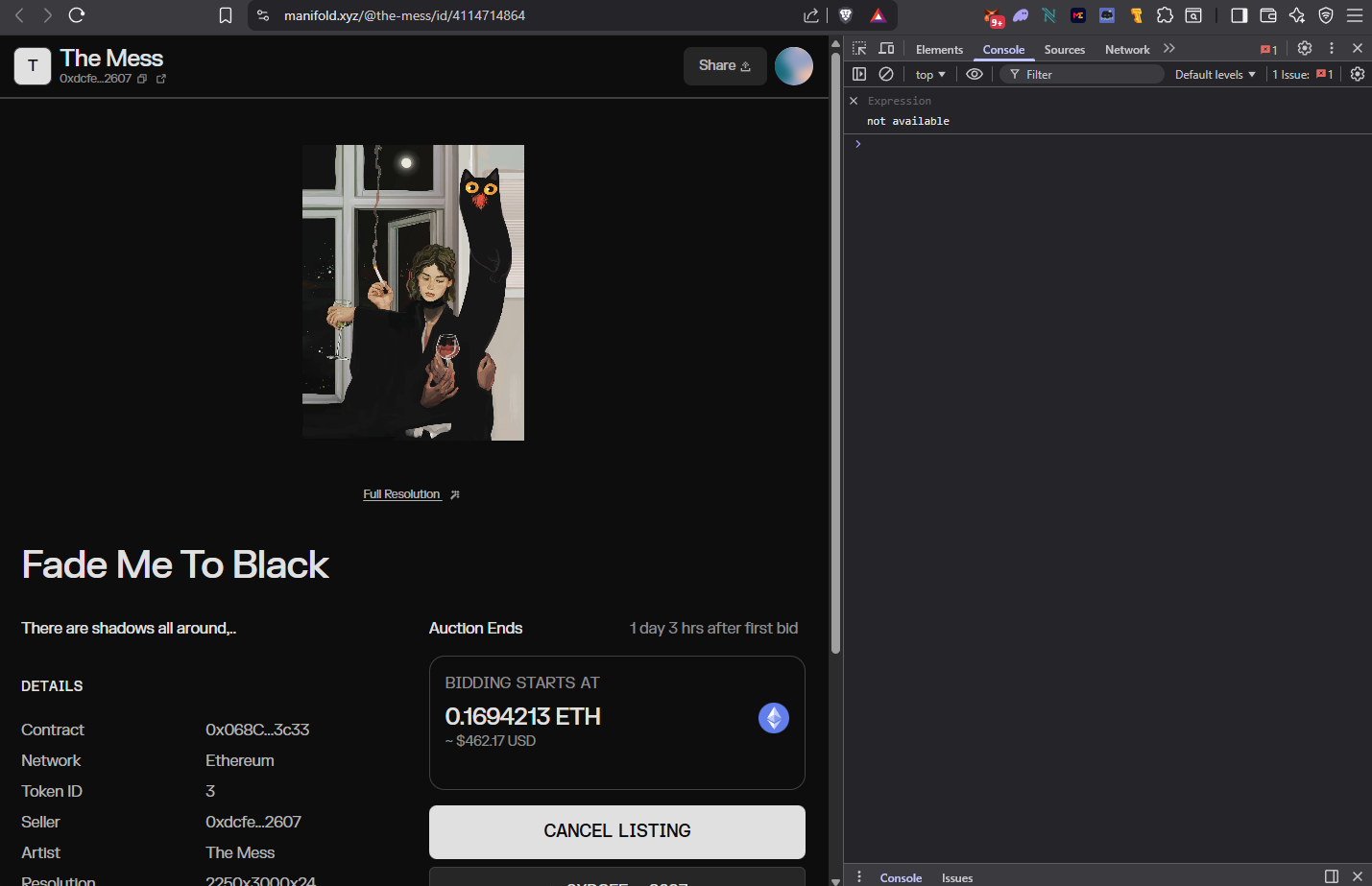 • I’m unable to open the auction (listing) page I created — it keeps loading indefinitely and never opens in the browser.
