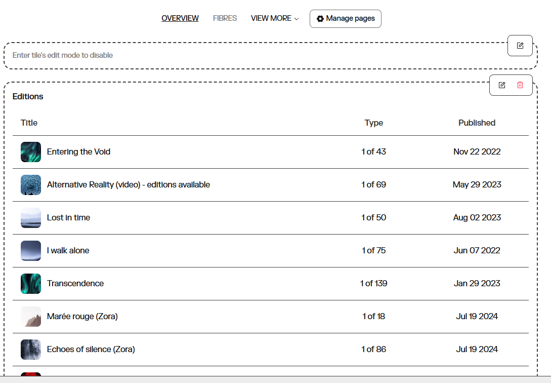 Hey guys, I can’t figure out how to drag collections to change the display order on my Studio Profile overview page, there is no drag button (see screenshot). It displays my older work first, but I want my more recent work to be shown first. I don’t see an option to display by date either.