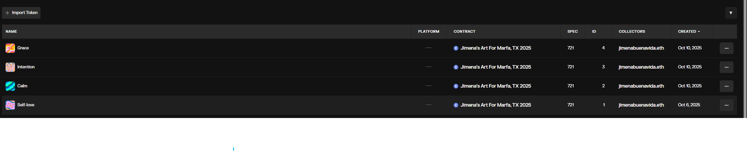 Indexing seems off for token #2 (“Calm”): the collection view shows the wrong thumbnail, even after I re-minted a few times.