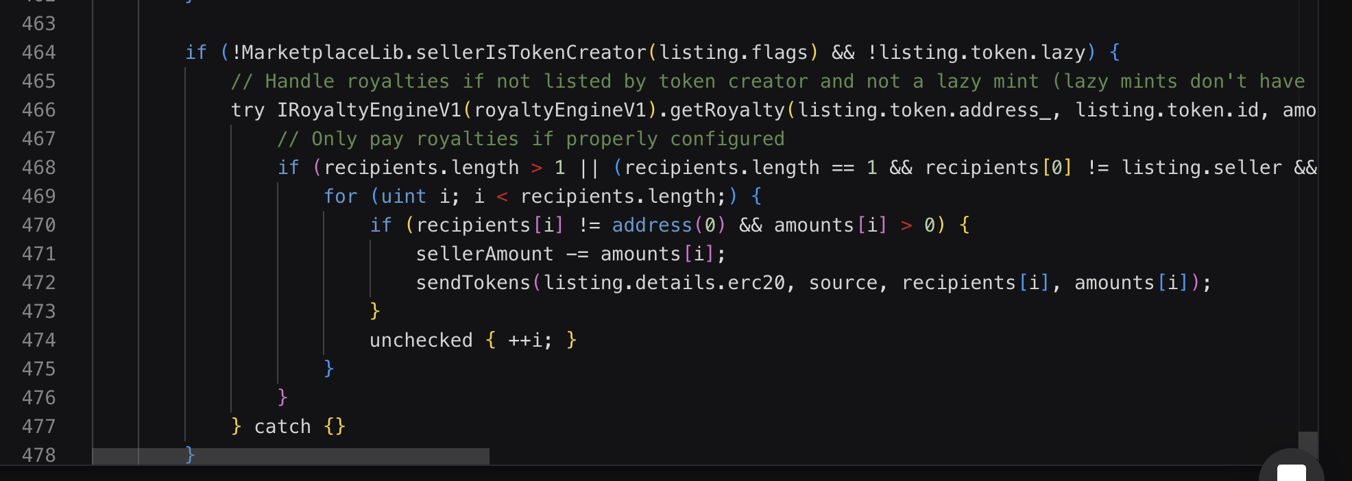 try IRoyaltyEngineV1(0x000000...000).getRoyalty(...)