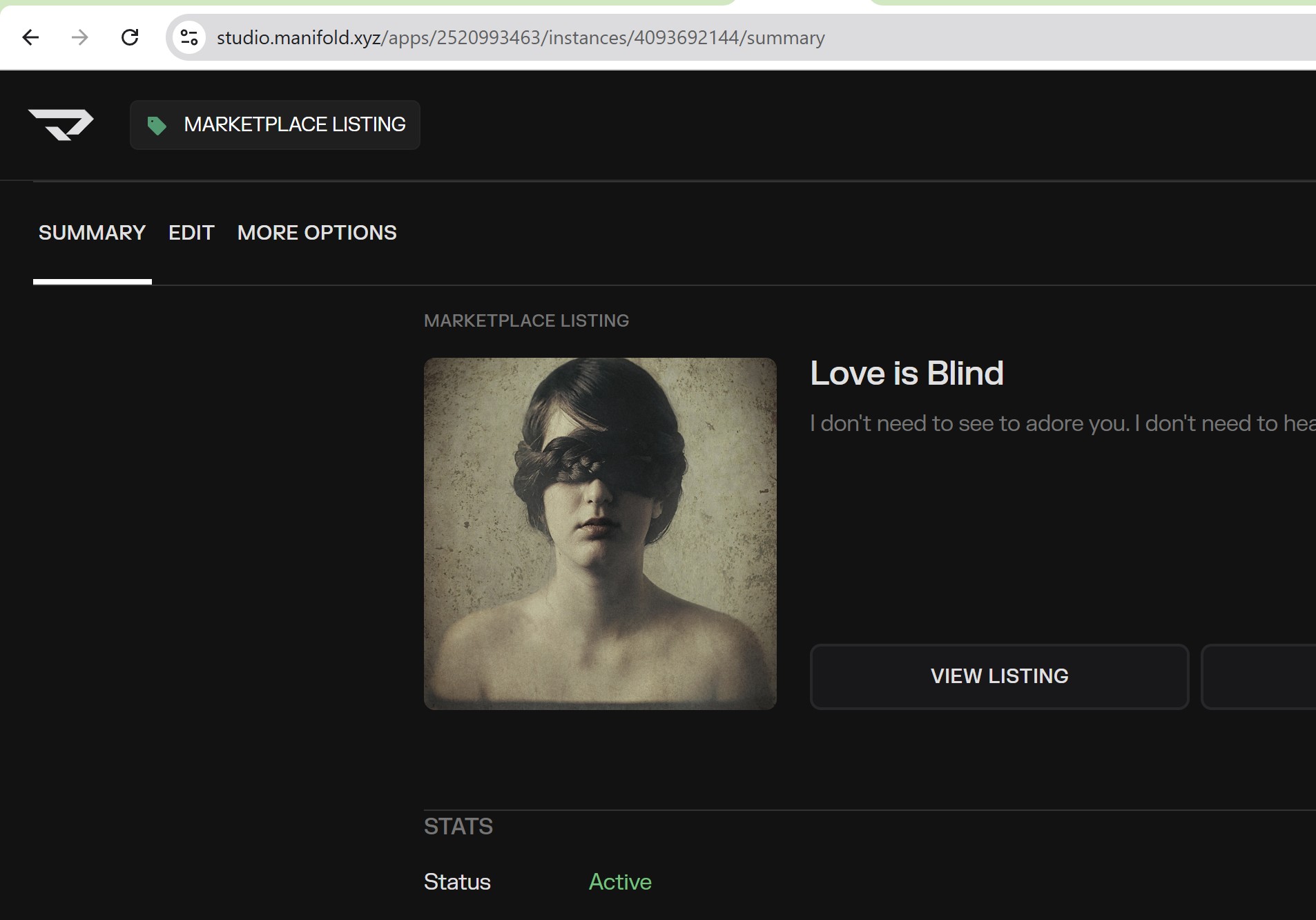 A summary of the issue 1/1 sold, but Status and Listing shows as Active on gallery