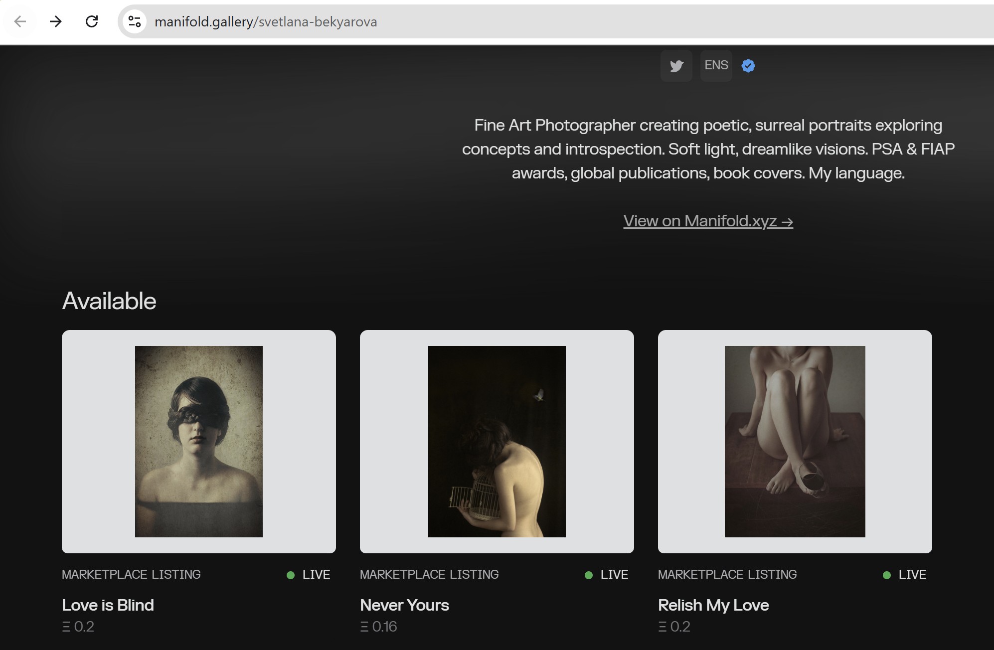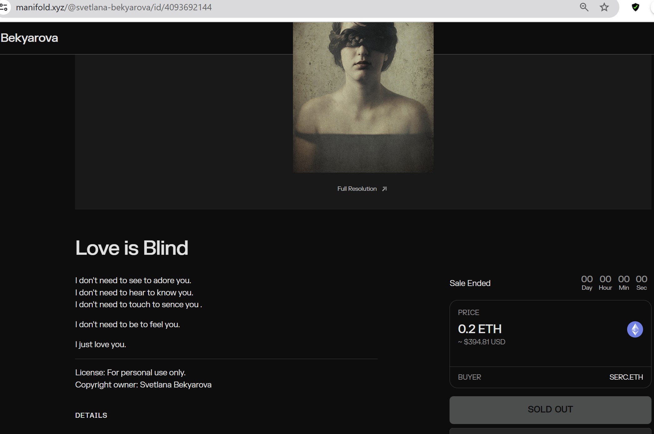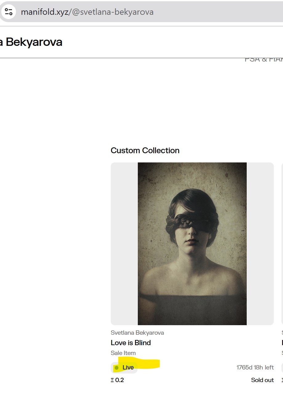 Here the page of the nft showing it is Sold Out: https://manifold.xyz/@svetlana-bekyarova/id/4093692144[https://manifold.xyz/@svetlana-bekyarova/id/4093692144](https://manifold.xyz/@svetlana-bekyarova/id/4093692144)