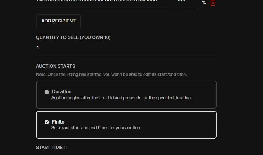 (It’s a transient 1155 contract 10 editions trying to auction one from each of the editions I own 1 of each)