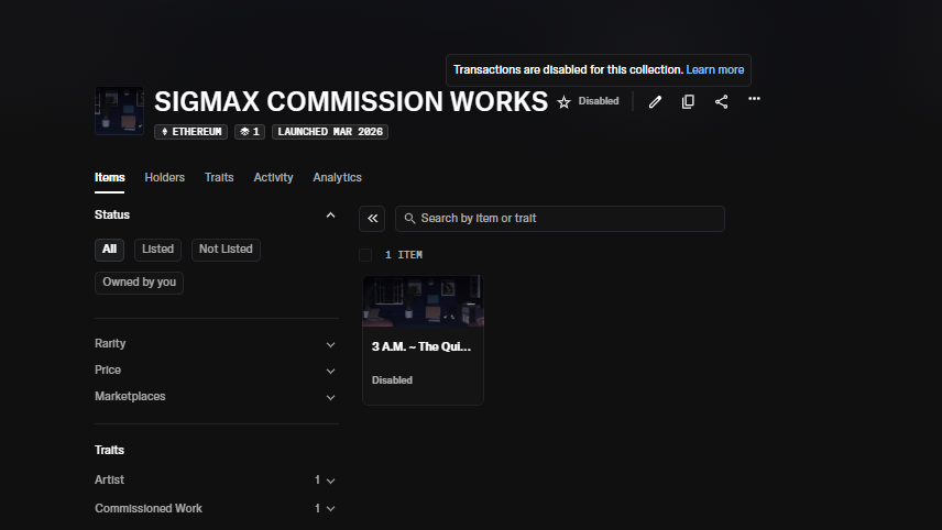 and this is screenshot of Opensea Page where its shows disabled ( transaction are disabled for this collection)