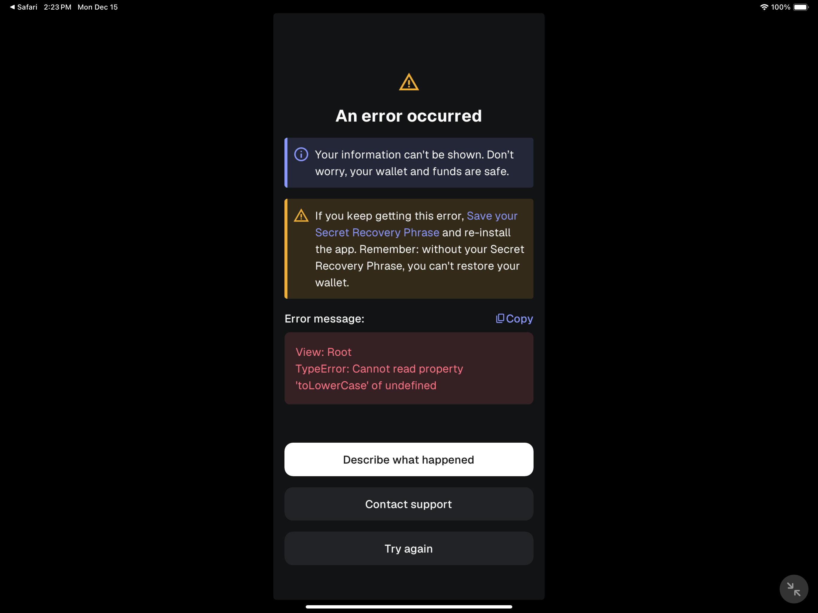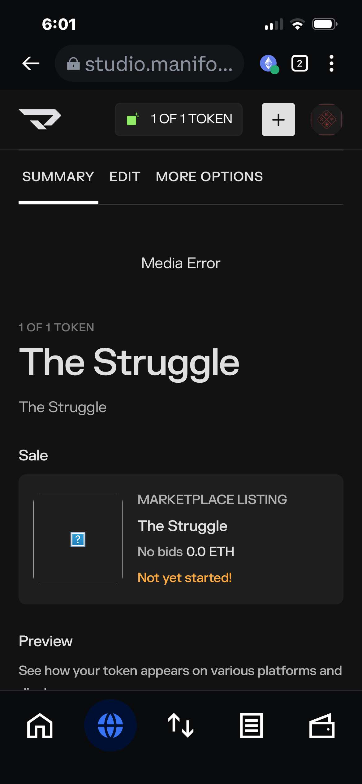 i am trying to edit nft in summary but once onto the edit screen, it always flickers and goes to a solid white screen.